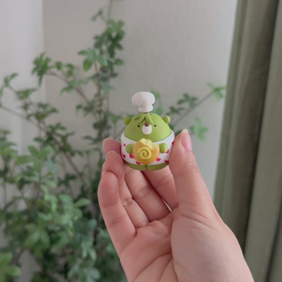 Baker Bear was inspired by a custard bun on an anxious day. I wanted to bring in a little silliness to a cozy character. Baker Bear bakes in his underwear and always ready to share the next treat.